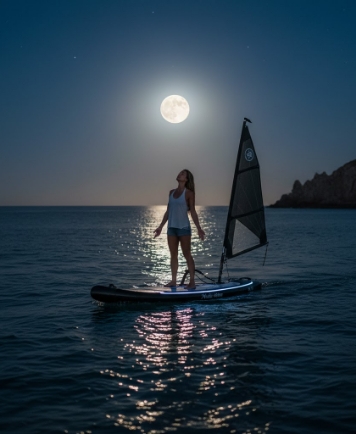 満月のエネルギーが最大になる夜、海面に現れる幻想的な「月の道」をHOBIEで進みます。従来の「浜辺からの月光浴」から、HOBIEによって「自ら月明かりの中へ漕ぎ出す体験」へ。パドルを使わない足漕ぎのため、水音が最小限に抑えられ、没入感が高まります。両手が自由になるため、水上で月を眺めながらの瞑想も可能です。